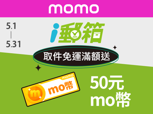 5/1-5/31 momo x i郵箱取件,單筆滿399元登記送50元mo幣!🎁